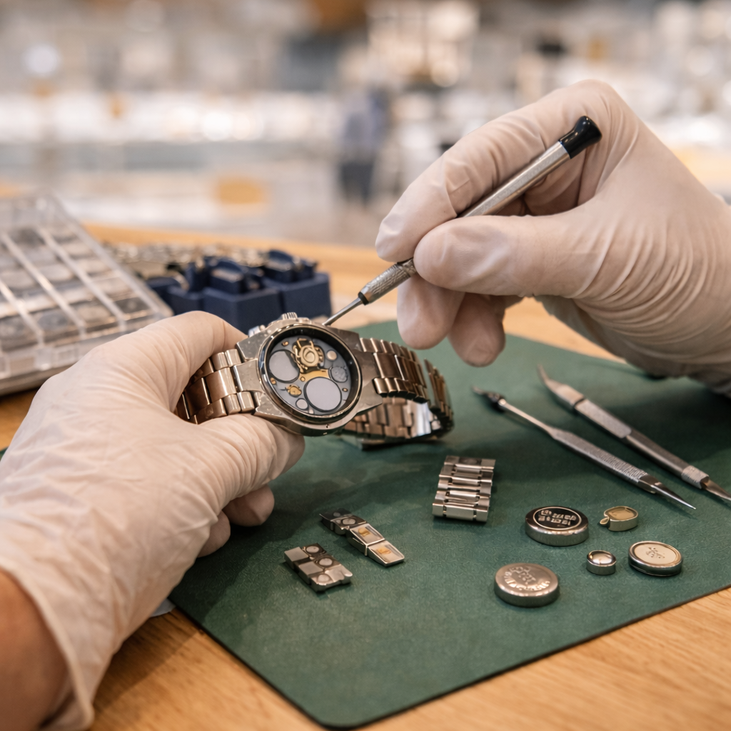 We repair watches with precision and care. From battery changes to sizing and adjustments, every detail is handled by professionals.